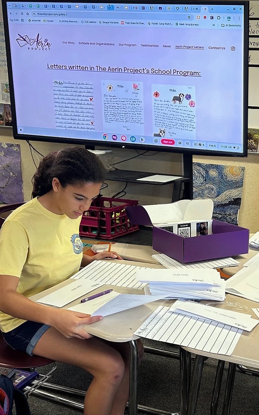 The Aerin Project was created in memory of Aerin Glaser and is rooted in a series of letters she wrote to her best friend, Tilly, before she left for college. Each letter was meant to be opened in a specific moment—when Tilly needed encouragement, a laugh or simply the presence of her best friend. Through The Aerin Project, students write letters that carry forward Aerin’s joyful legacy, reminding each other that meaningful connection can live on through words.